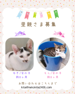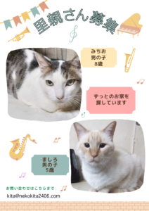 そんな今日は身近な猫たちの幸せを願って、里親さま募集のチラシを掲載いたします。