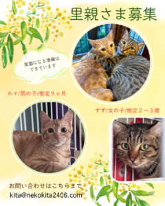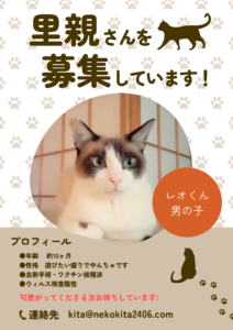 そんな今日は身近な猫たちの幸せを願って、里親さま募集のチラシを掲載いたします。